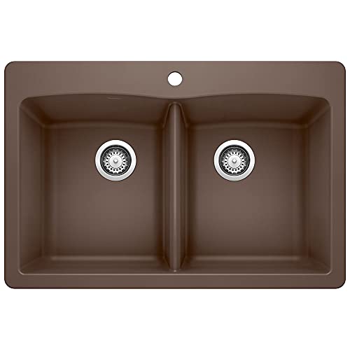 Consumer Reviews BLANCO 440218 Diamond Silgranit 50/50 Double Bowl Undermount or Drop-in Kitchen Sink, 33 L X 22 W X 9.5 D, Café